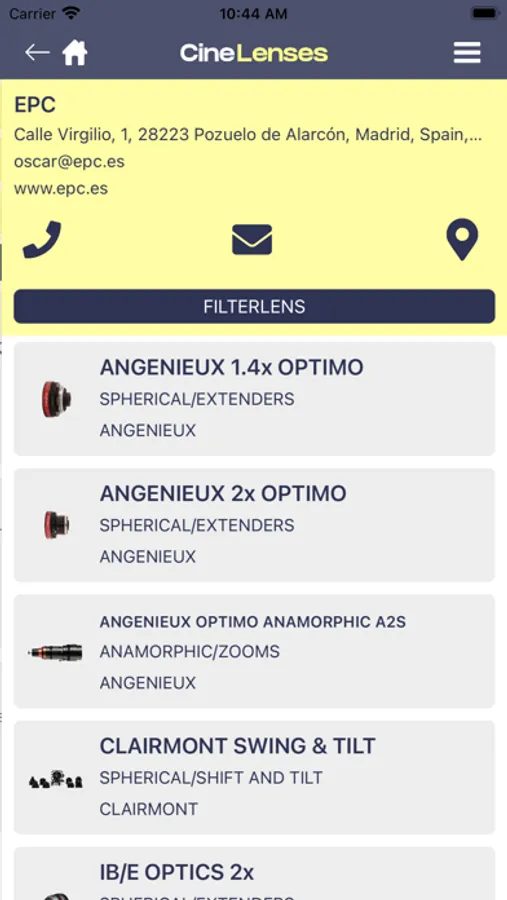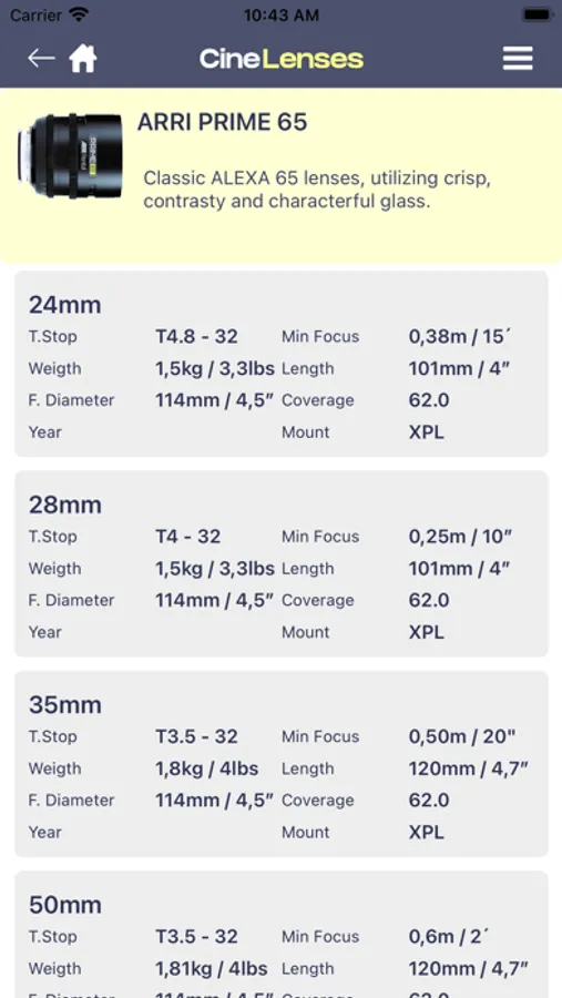 The search engine will allow you to find the target lenses straightforwardly, based on the t stop, close focus, weight, etc.