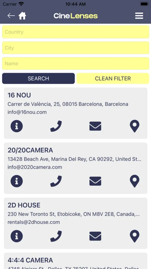 You have at your disposal a list of more than 800 users who rent all over the world. If you enter the name of a country and a city, the application will link it to the stores you are looking for.