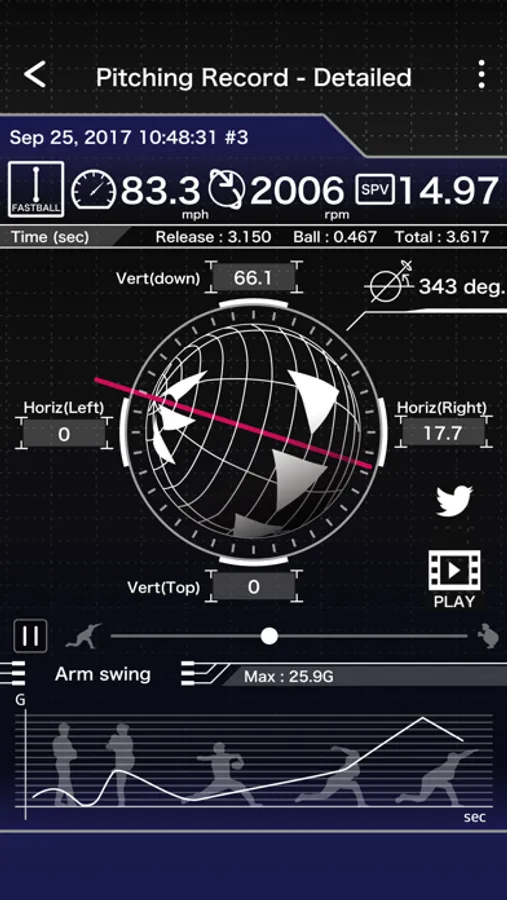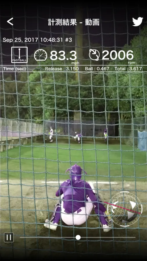 You can Tweet recored video with pitching data such as speed, spin, etc.