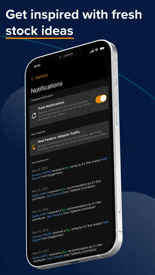 - Receive push notifications or email alerts about your favorite stocks and experts