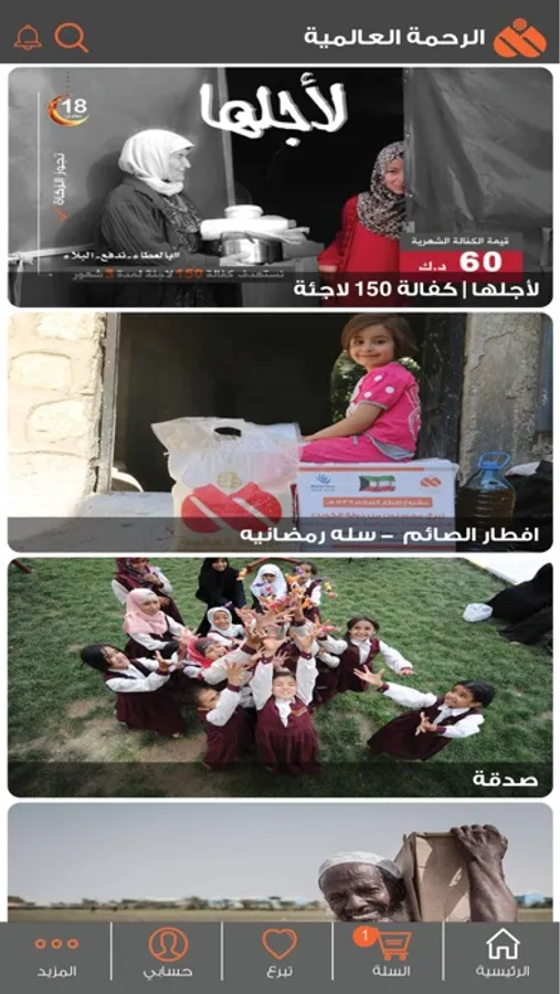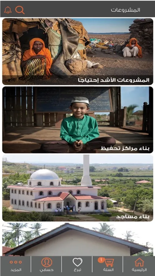 تطبيق الرحمة العالمية بوابة خيرية تتيح لك تصفح جميع المشاريع الخيرية.