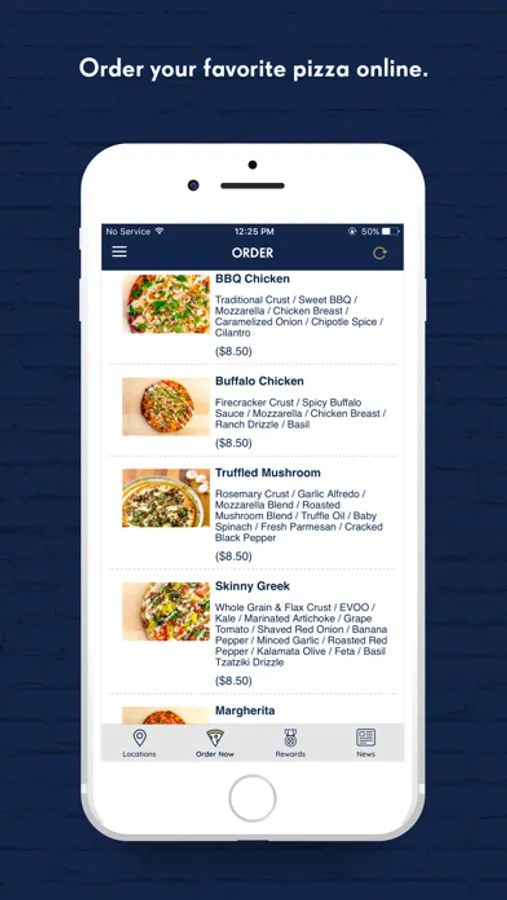 order ahead, Skip The Line®, and earn rewards with the Pizza Studio app.