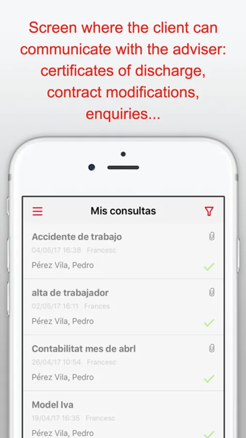 In the app the client can consult his adviser and access all the new work, fiscal and legal that affect his company.