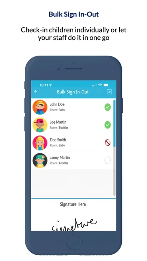 - Bulk sign in-out for out of school clubs, activity centres and creches