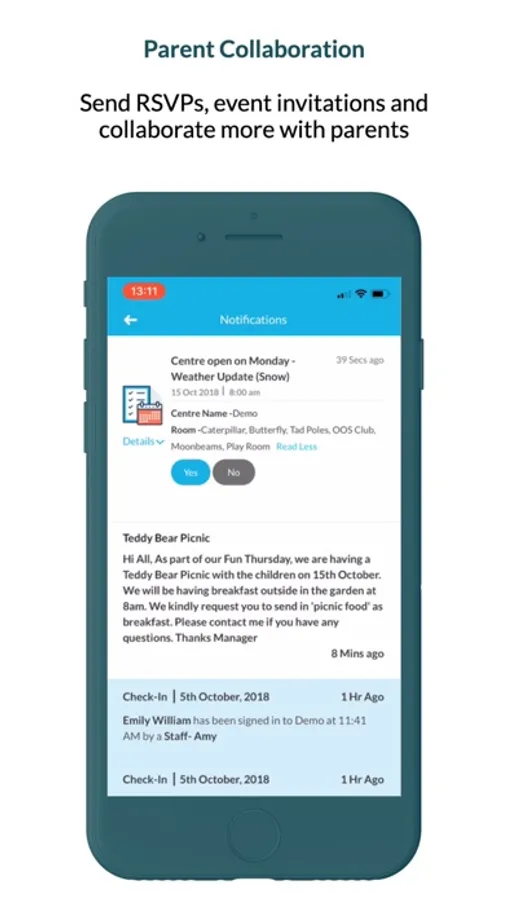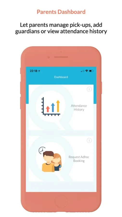 - The ability for parents to instantly authorise guardians for pick-up & drop-off via the app