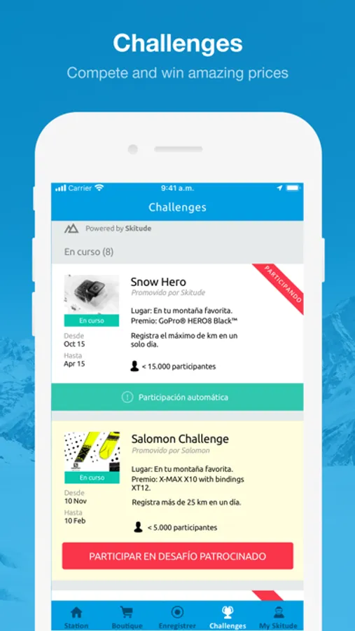 Set up your Skitude profile to track your activities using the GPS tracker. Find out where you are in the season's rankings and try to complete the challenges to be in with a chance of winning great prizes.