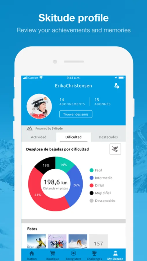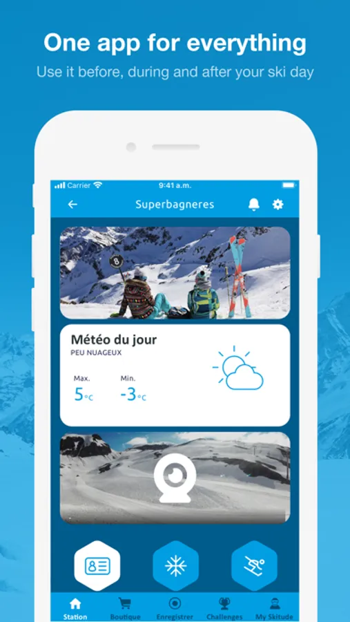 The App offers a range of features designed to optimize your experience before, during and after your trip. It’s very simple, plan your getaway and get real time updates on slope conditions. Set up your Skitude profile and track your activities on the slopes to get detailed stats about all your activities. And that’s not all, take part in challenges competing with the whole community, to be in with a chance of winning incredible prizes.