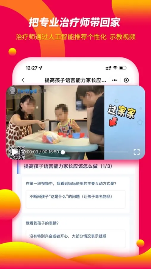 l 测评诊疗一体化,获得人工智能的家庭干预专家个体化视频指导,