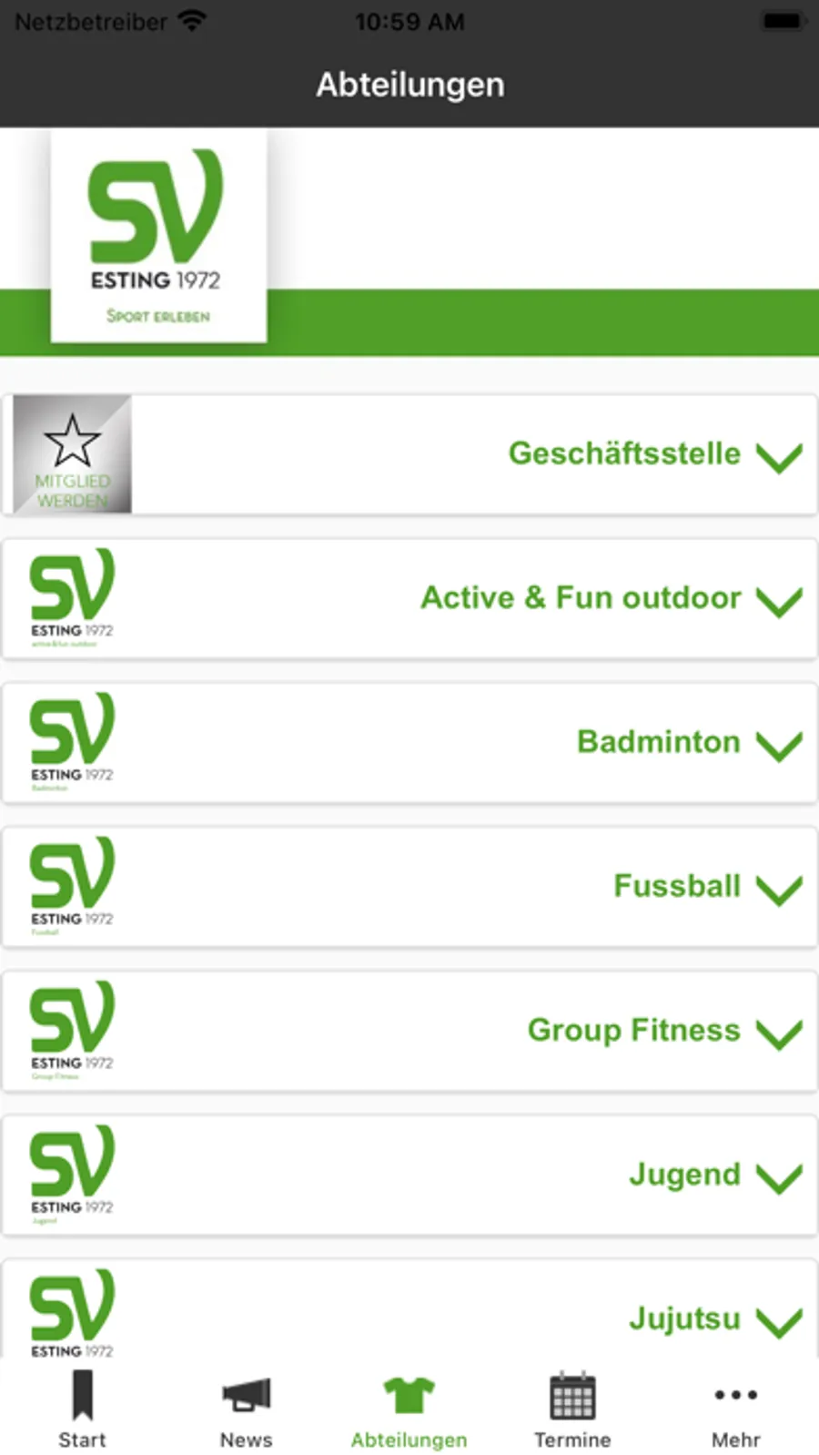 Ab sofort sind nicht nur unsere Mitglieder sondern auch der Verein mobil. Mit einer eigenen App können wir Euch jetzt über Aktuelles im Verein informieren, Bildergalerien zeigen und Termine eintragen und noch so manches mehr. SV ESTING bietet mit dieser App, interessante Einblicke für Fans, Mitglieder und Interessierte.