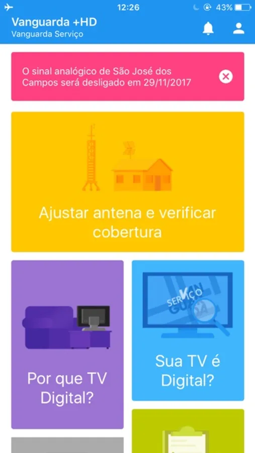Com o Vanguarda + HD você poderá também reportar um problema de sinal ou de sua recepção e ter uma resposta muito rápida.