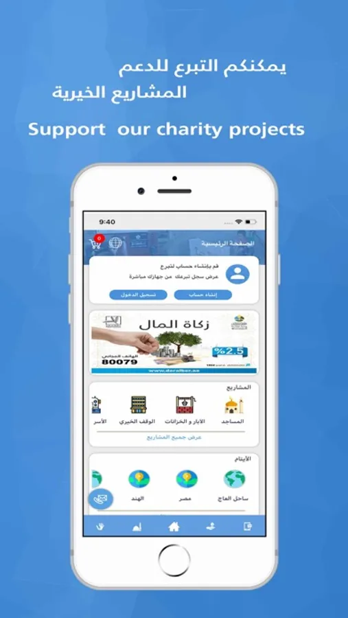Dar Al Bar Society has been implementing many charitable projects in many Arab and Islamic countries. It has a great impact on spreading the teachings of Islam and spreading the spirit of social solidarity among the Muslims despite of the distance between them. These projects are many as good as Building mosques and supervising them, digging wells, allocating endowments for charity, producing productive families, building orphanages, building schools and colleges to teach Muslim children, establishing Islamic libraries, facilitating Hajj and Umrah for poor, Distribute Eid Sacrifice meat on the poor Muslims, implementation of Ramadan Fasting Project