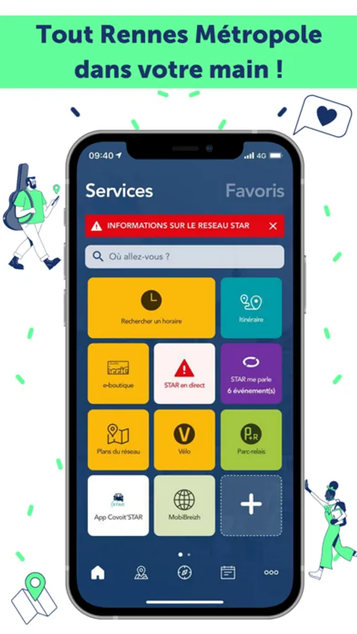 Pour vos trajets ponctuels ou quotidiens, retrouvez toutes les informations du réseau STAR dans votre application. En un clin d’œil, consultez les horaires, itinéraires, les alertes en fonction de votre mode de transport : bus, métro, vélo ou covoiturage.