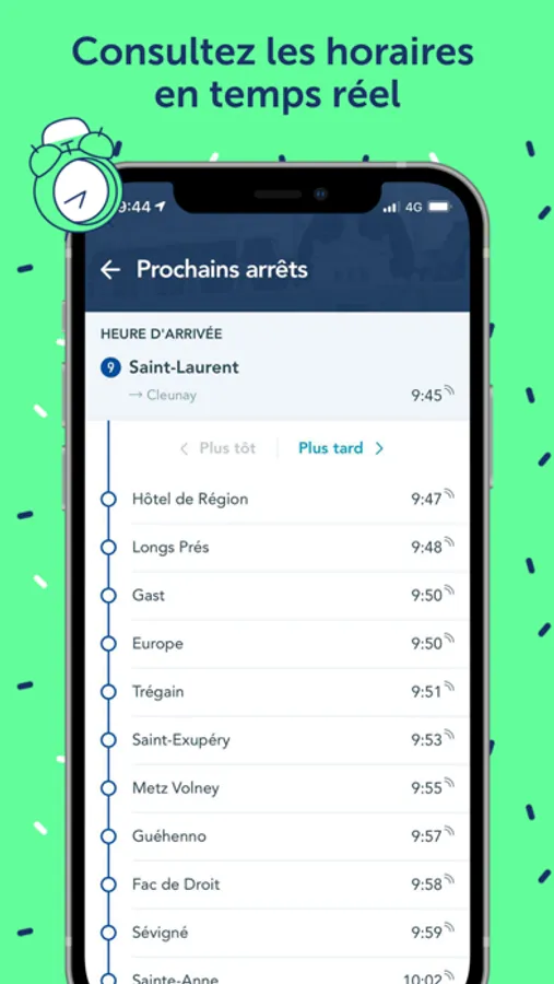 - Grâce à la géolocalisation, trouvez l’arrêt le plus proche de vous pour déplacer facilement et consultez les horaires de passage en temps réel de votre bus ou métro.