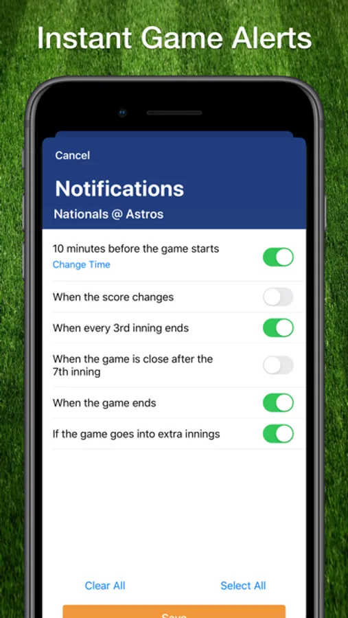 * Immediate game notifications for scores, close games, extra innings, and more!