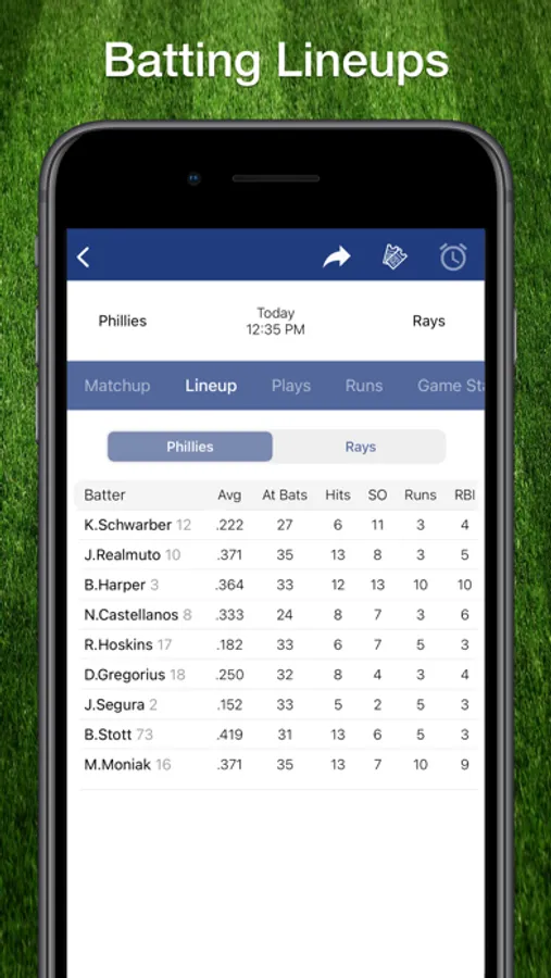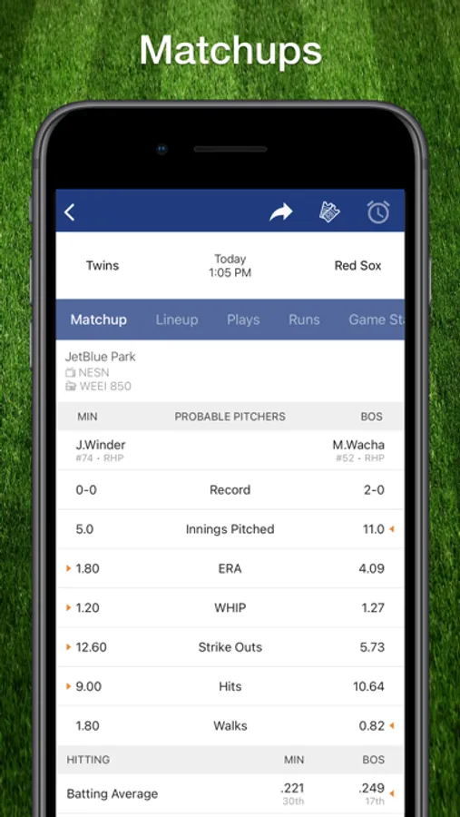 * Game preview includes probable pitchers, batting lineups, & teams matchup stats!