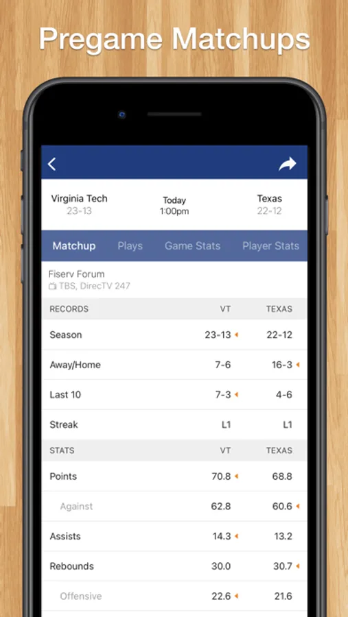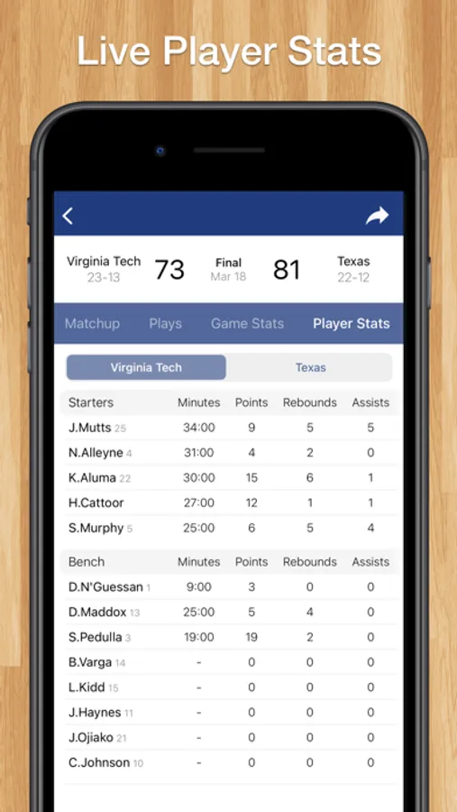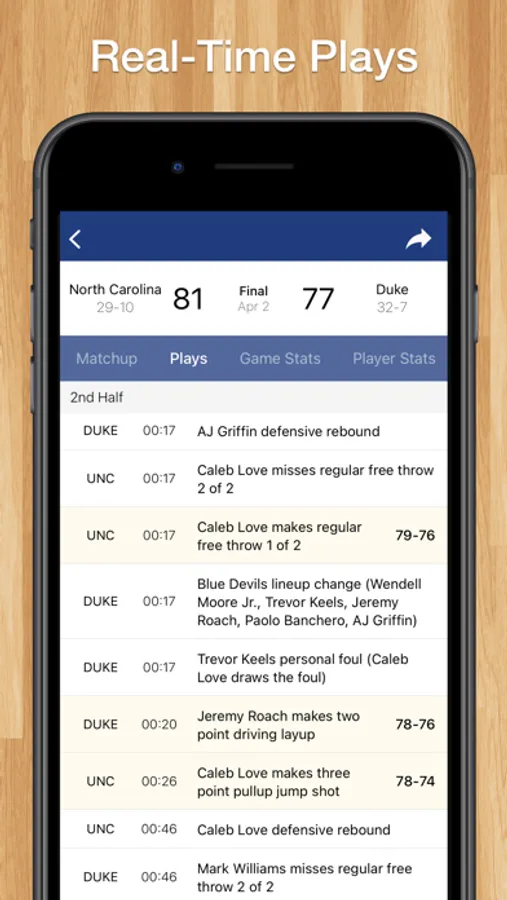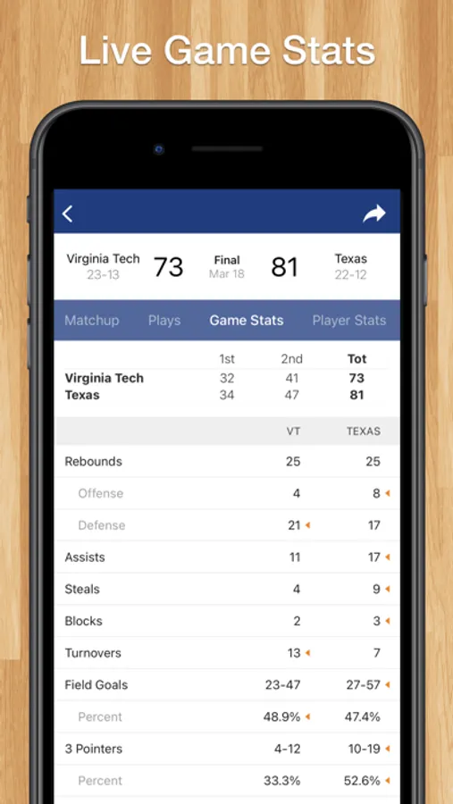 * Live NCAA scores & real-time plays keep you on top of the college basketball action!