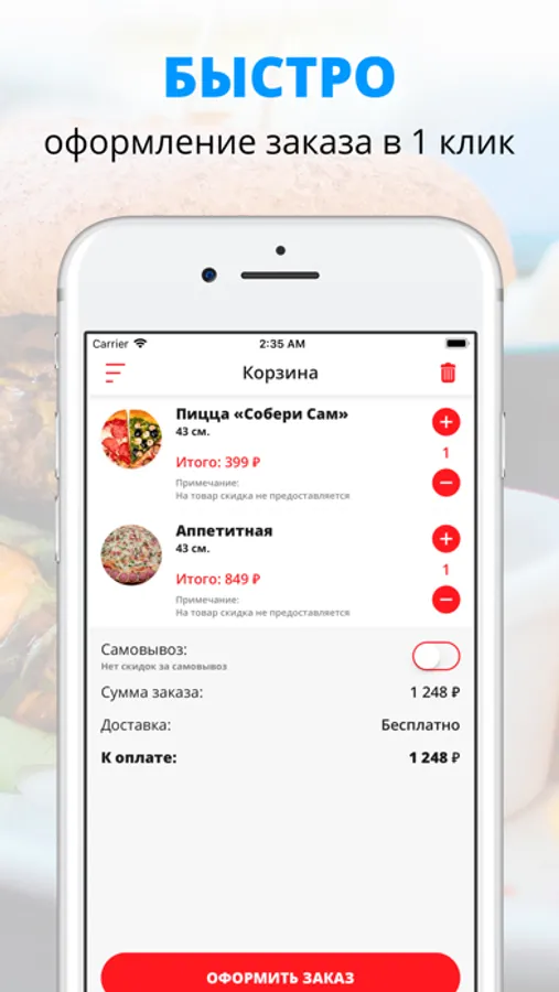 Круглосуточная доставка пицц, роллов, бургеров, бизнес ланчей и много другого.