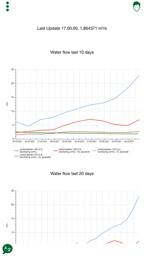* Vannføring med graf fra nve.no.