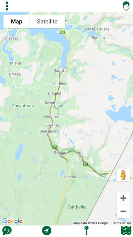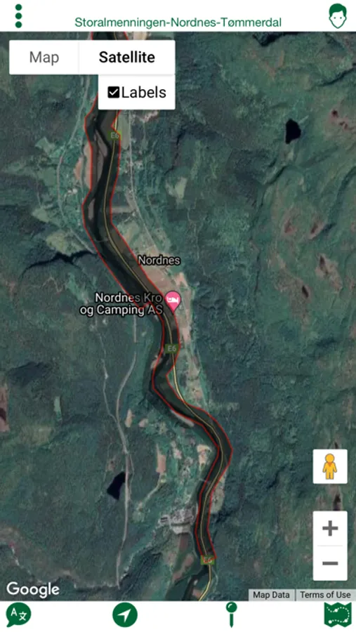 Sportsfiske applikasjon for Saltdalselva med følgende innhold: