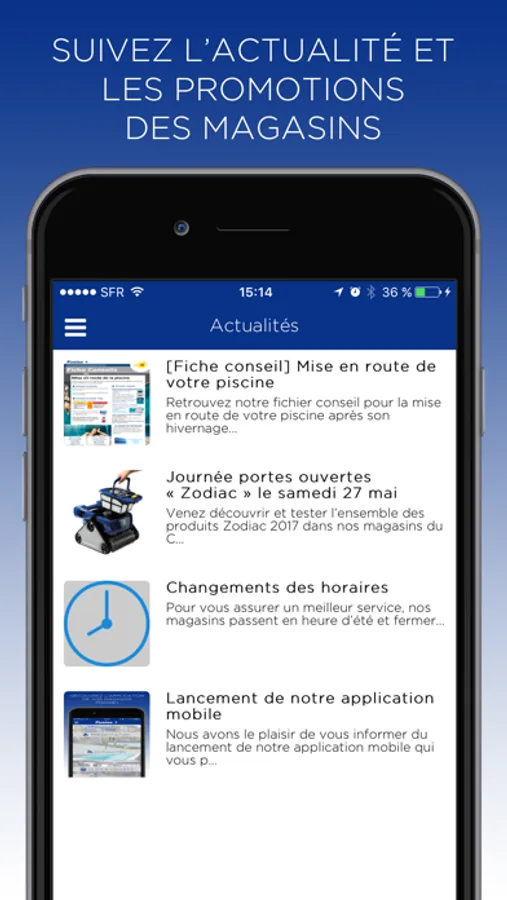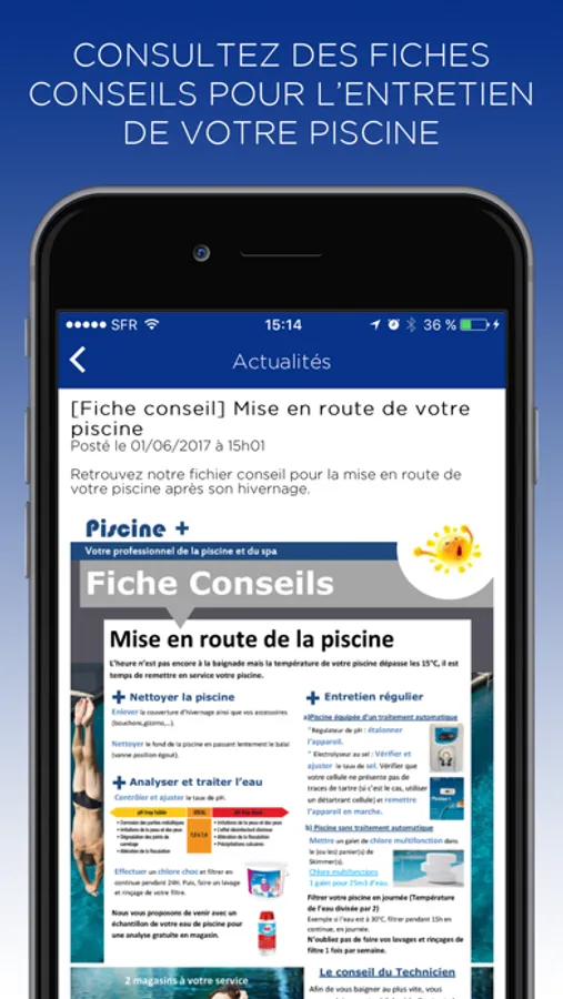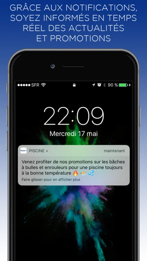 Enfin, grâce aux notifications push, restez connectés et soyez informés en temps réel des dernières actualités des magasins Piscine + :