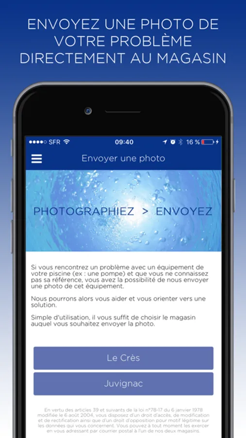 • d'envoyer depuis l'application une photo d'un matériel qui vous poserai problème afin que notre équipe de professionnels puisse vous répondre