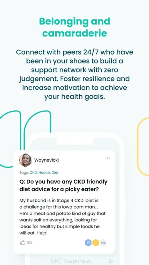 Belonging and camaraderie: Connect with peers 24/7 who have been in your shoes to build a support network with zero judgement. Foster resilience and increase motivation to achieve your health goals.