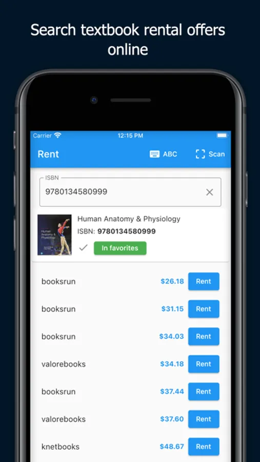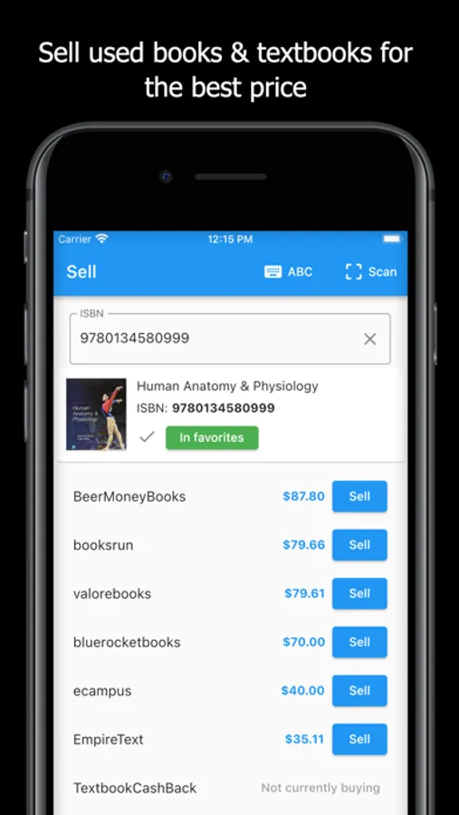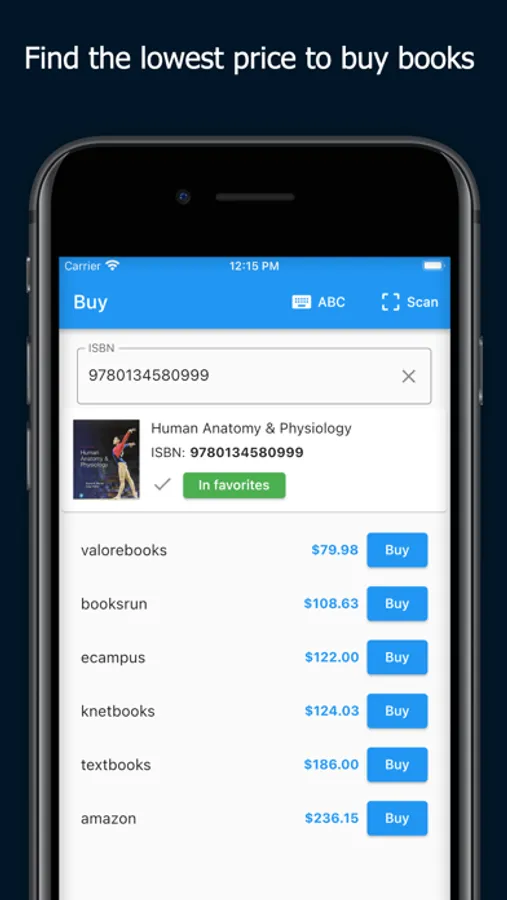 - Favorites: If you are scanning books and get a good offer, just tap Add to Favorites, and the app will save that book in a list so you can find it easily later.