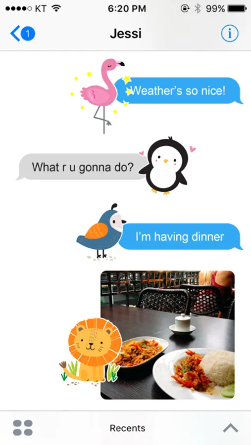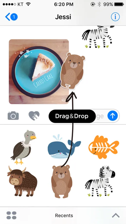 • You can peel and place them on anything in your conversation – bubbles, images, or even other stickers.