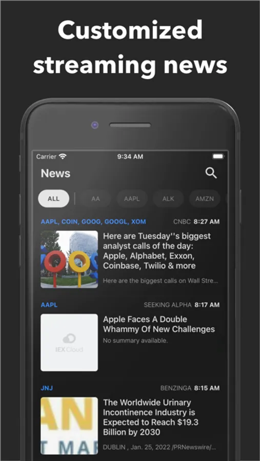 Follow the news for all the stocks you follow with our amazing live streaming news tab. Filter by all the stocks you follow, or flip through each one individually.