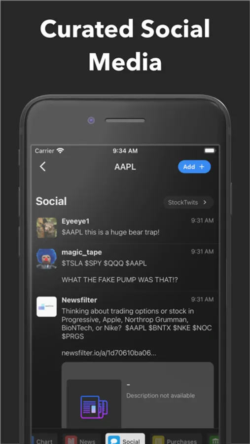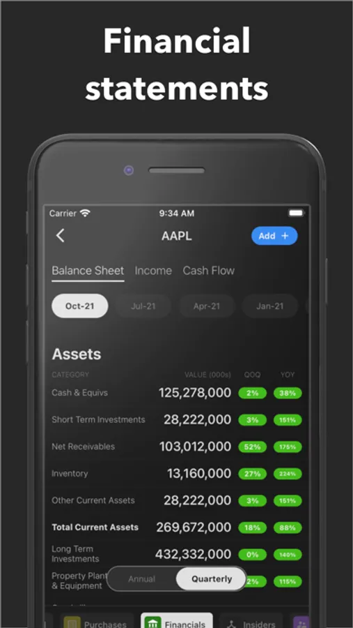 Browse real-time news from over 3,000 global sources, along with social media feeds from Stocktwits to stay on top of rumors and market sentiment. Dive in to fundamental analysis with 4-years of financial statements. Gather insights from insider (employee) trading and institutional and fund ownership info. See the data the pros use, all for free on your phone.