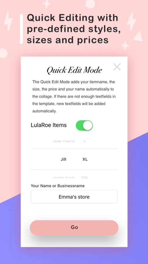 • Lightning-fast Quick Edit Mode with pre-defined styles, sizes and prices