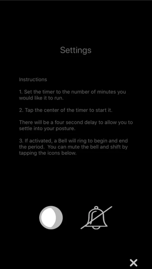 Three zendo bells ring to begin your period of meditation and one will end it, or you can simply press mute and sit in silence until the screen is empty. Just set the time, tap the screen, and enter the zendo.