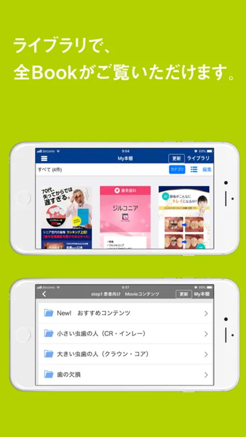 あらかじめ歯科医院側が選択した電子書籍を患者さんが視聴したり、患者さんが自分の興味のある電子書籍を自由に選択し視聴することができます。