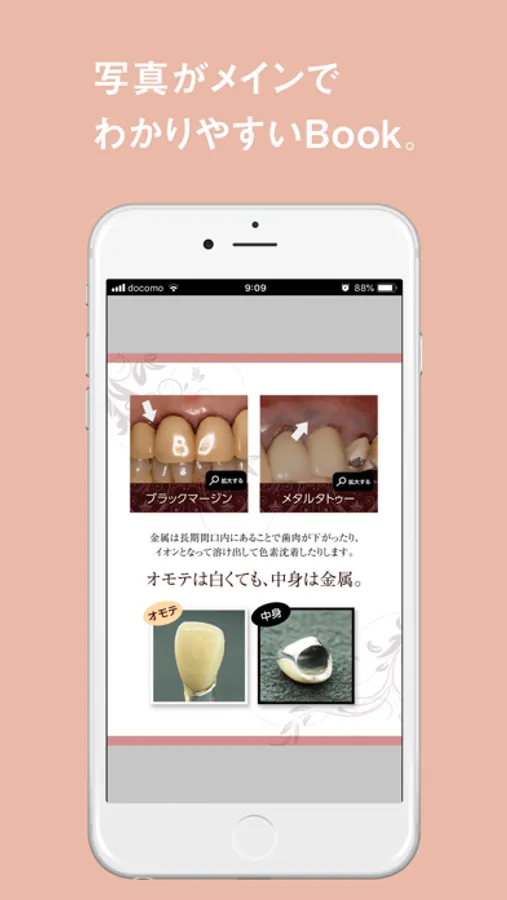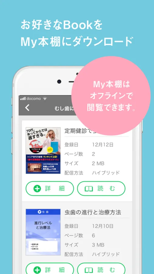 e-haBooksは歯科専用の電子書籍サービスです。患者さんに「医師の話を聞く気になる」情報を提供することで”自費治療の増加”と”メンテナンスの離脱防止”を実現します。
