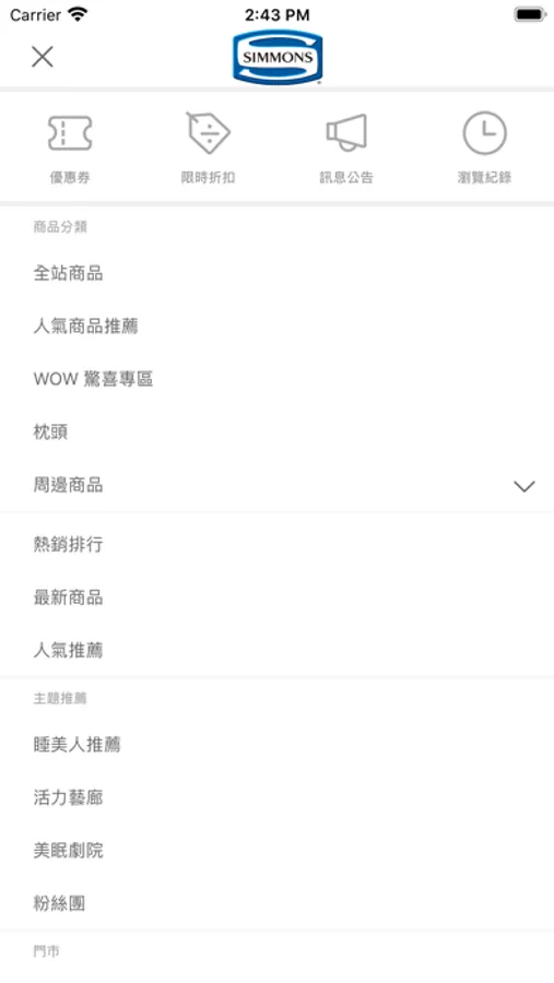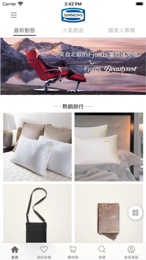 Simmons席夢思也有自己的專屬APP囉~想要買到美國Simmons席夢思指定在台唯一授權公司的席夢思獨立筒床墊,市面上買不到的超優惠絕版品,就來Simmons席夢思美眠線上商店!超清晰的床墊、寢具、居家飾品美圖,用手機隨意逛,都能快速找到夜夜好眠的夢想床墊!席夢思不定期推出驚喜限定優惠,APP會自動推播訊息,讓你不再錯過好康優惠!