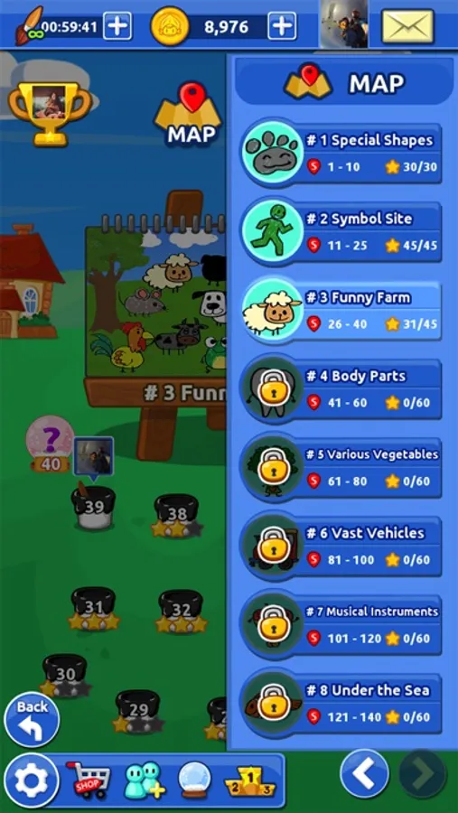 - Three modes of level selection in a stage for personalized play
