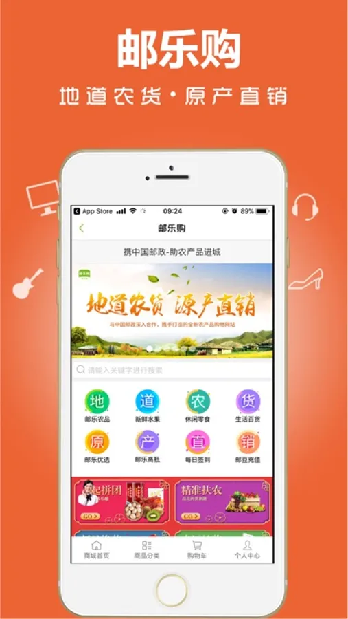 邮乐购是触众科技与中国邮政深入合作,携手打造的全新农产品商城,优选自全国各地具代表性的地标农产品和风味特产,倡导原汁、原味、原产地的产品理念,主营健康粮油、干货、休闲零食、绿色食品等农特产品。