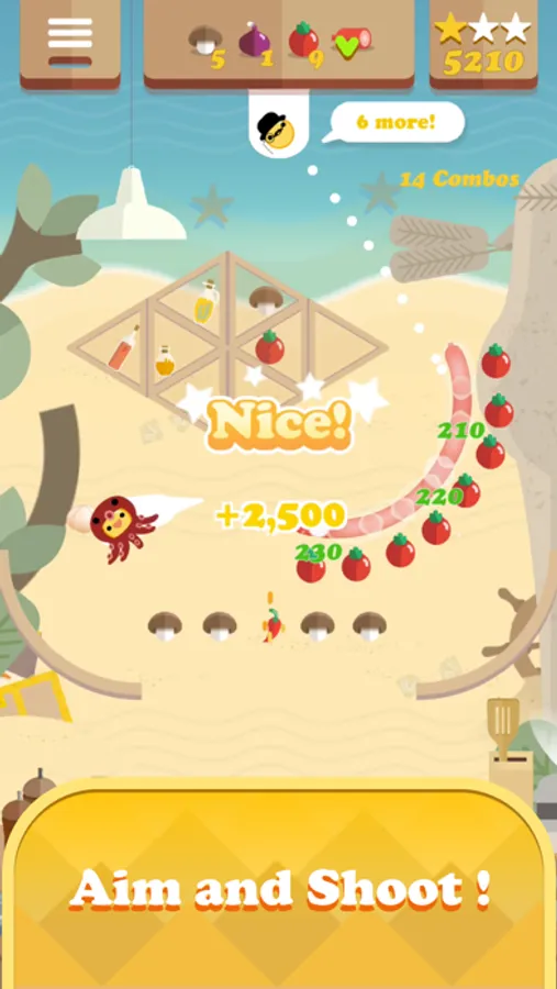 Aim for the sweet spot, shoot and bounce around with style! Fresh ingredients show how healthy they are! Grow big with carrots, release fire from Chilis and explode Pumpkins! Beware! Fall into stove will look very splashy.