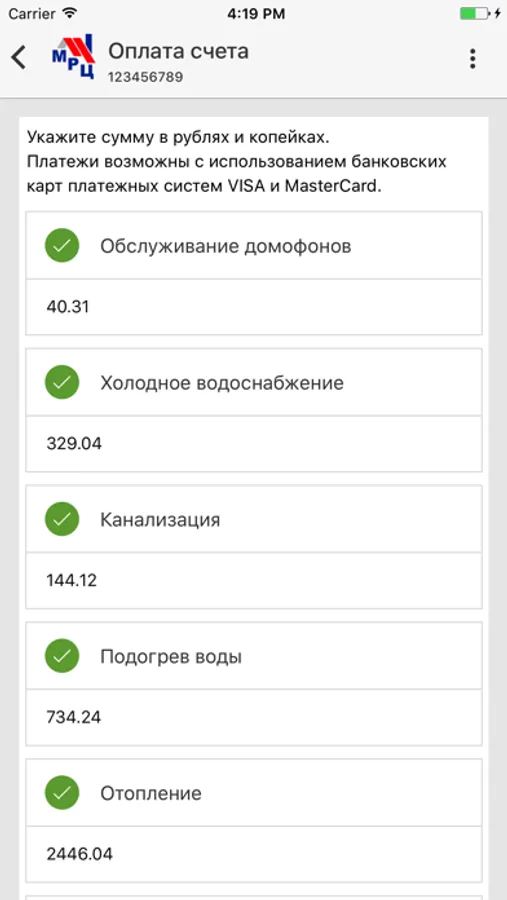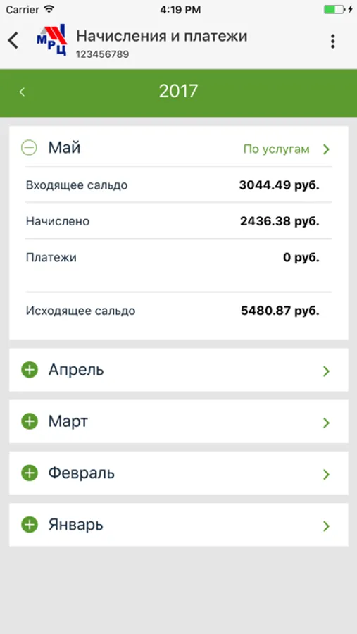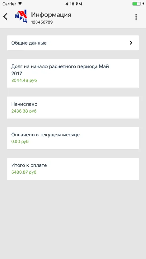 Мобильное приложение "ООО МРЦ" обеспечивает удаленное самообслуживание абонентов «Многофункционального расчетного центра» с экрана мобильного телефона. Вы можете получать актуальную информацию по лицевому счету, отслеживать историю платежей и показаний приборов учета по всем услугам за выбранный период, передавать показания приборов учета и производить оплату услуг онлайн.