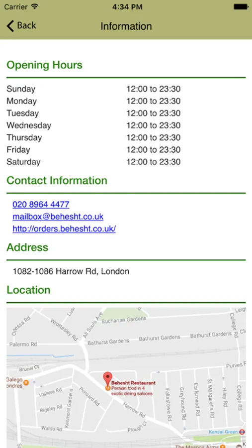 With the Behesht Restaurant iPhone App, you can order your favourite appetiser, main courses, extras, desserts, drinks quickly and easily. It’s a Behesht Restaurant store in your pocket!