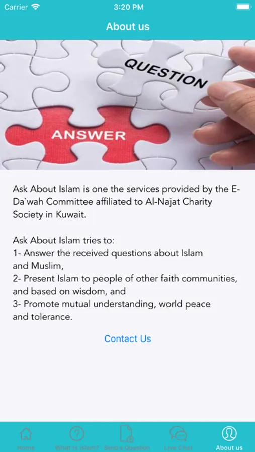 Ask About Islam is one the services provided by the E-Da`wah Committee affiliated to Al-Najat Charity Society in Kuwait.