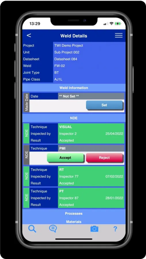 The Welding Coordinator mobile app from TWI Software allows real time welding and NDE progress to be updated to the Welding Coordinator software from a mobile device.