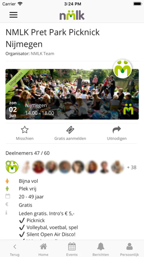 Sportievelingen, cultuurliefhebbers, feestbeesten, filosofen, natuurliefhebbers... bij NMLK vind je ze allemaal. Communicatieve mensen (HBO+) die nieuwe ervaringen willen beleven met nieuwe mensen. Samen de stad (her)ontdekken en nieuwe hotspots bezoeken. Met interessante leeftijdsgenoten omgaan, lol hebben, ideeën uitwisselen, ervaringen delen en nieuwe vrienden maken. Door de grote hoeveelheid en diversiteit aan events zitten er altijd wel nieuwe mensen bij met dezelfde interesses als jij.