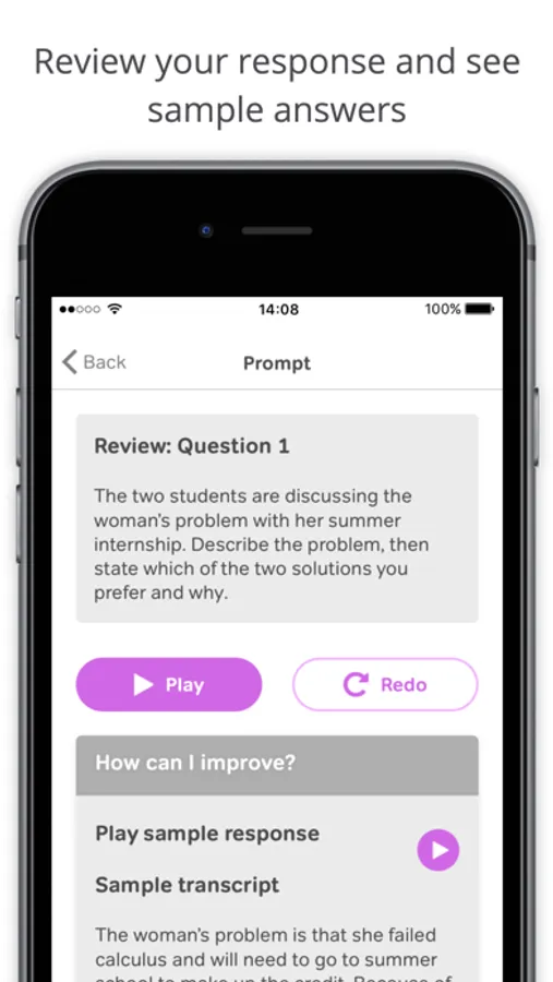 Magoosh TOEFL Speaking brings all of these things together in a simple and effective app. You will love practicing with it on the go and on the couch.