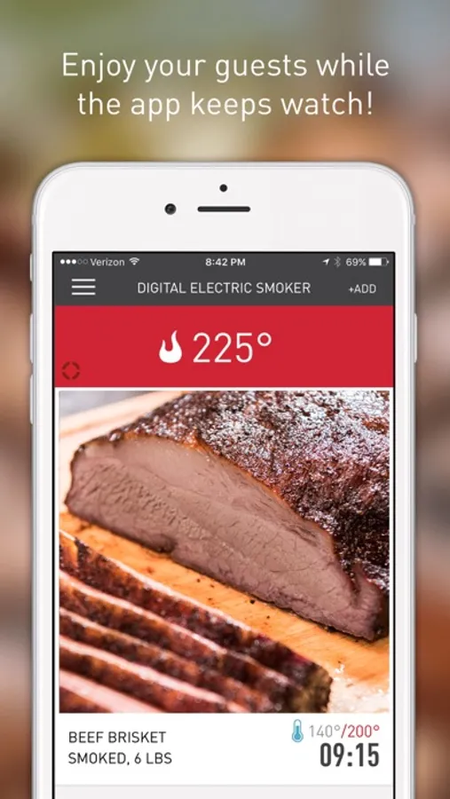 Now you’re cookin’ with the Char-Broil SmartChef® Smoker App. Spend time with your family and friends while your Char-Broil WiFi-enabled SmartChef Smoker is controlled directly from your iPhone.