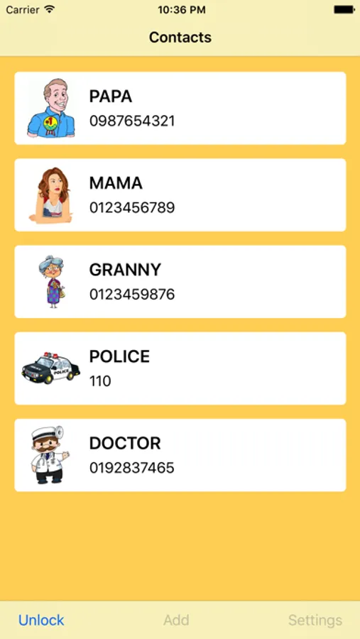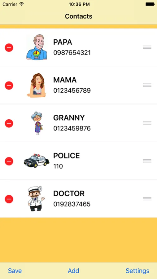 Simply add the most important contacts in your list and press on the contact to make a call. You can edit contacts, change images, change order in the list.