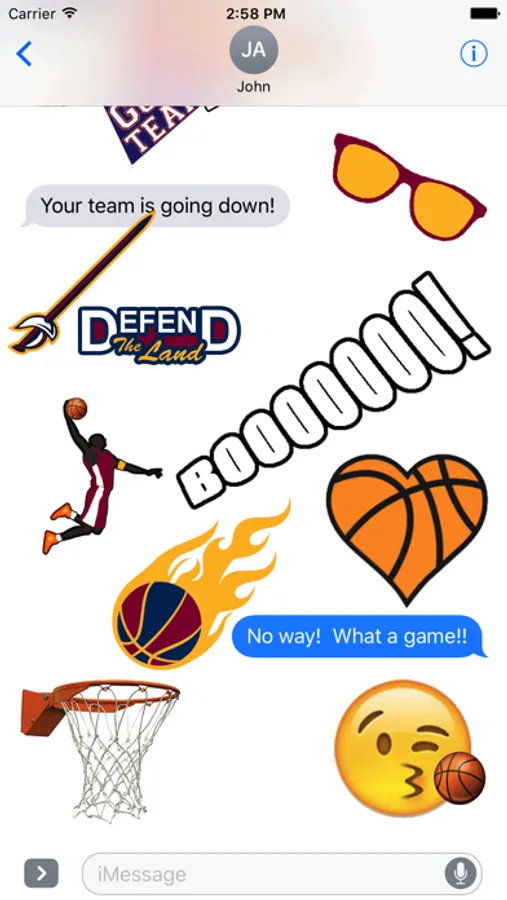 Simply tap to send Cavaliers basketball fandom in a message, adjust their size, or peel and place them on top of bubbles, other stickers, and your photos whether a Cavaliers fan or another rival basketball team.