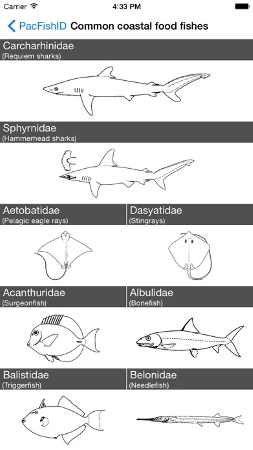 Learn to recognize fishes and invertebrates from Pacific Island countries and territories with this application, developed and maintained by the Coastal Fisheries Programme of the Pacific Community (http://www.spc.int/coastfish)