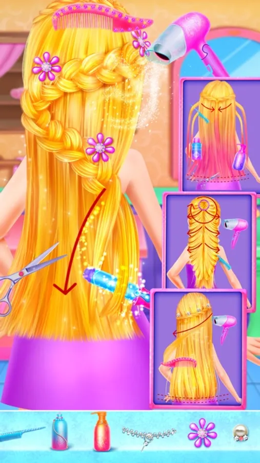 Long hair princess is really attractive today. She will have a nice performance show and now she needs to have a spa and make up beautifully to leave a good impression to the people. Let’s start to help her make up and show us your excellent fashion skills. Try your best to make long hair princess as beautiful as you can.