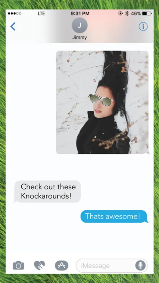 Free animated iMessage app to try out some new Knockaround Sunglasses! Drag and drop them right onto pictures of you or your friends in text conversations. Keep a look out for updates to see what new glasses are coming out!